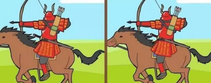 Ta vizualna uganka izziva vašo pozornost do podrobnosti: na dveh na videz identičnih slikah bojevnika na konju se skrivajo tri razlike. Ključ do uspeha