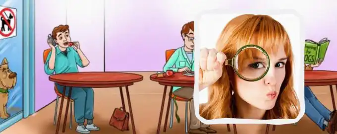 V petih sekundah moraš med gosti v kavarni prepoznati lastnika psa pred oknom. Ključ do odgovora ni v sami živali, temveč v majhnem, a izrazitem detajlu na eni.