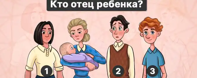 Na sliki so trije moški in ženska z otrokom. Eden od njih je oče. Ključ do odgovora ni v izrazih obrazov, temveč v eni sami, zelo opazni podrobnosti,...