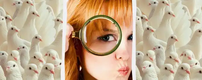 Na kaotični risbi, polni belih golobov, se skriva en sam petelin. Ključ do njegovega odkritja ni v hitrosti, temveč v pozornosti na majhne anatomske podrobnosti, ki ga ločijo.
