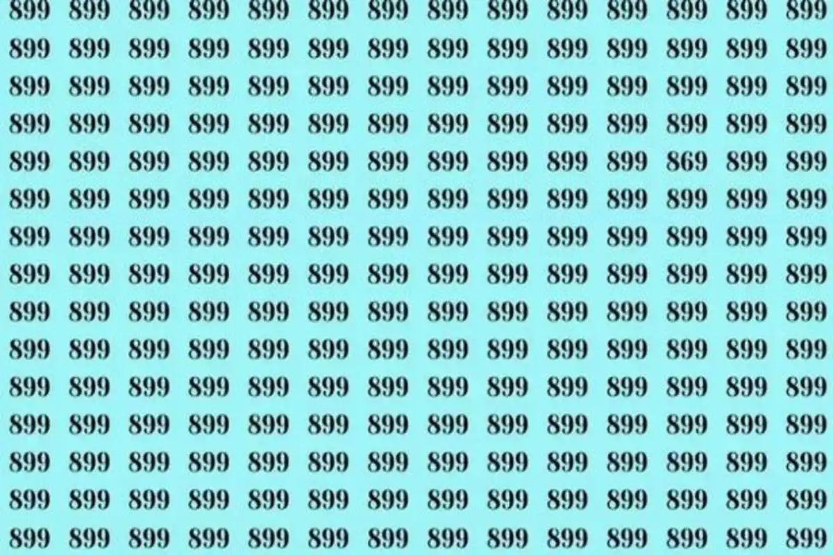V morju ponavljajočih se številk 899 se skriva ena sama drugačna – 869. Vaša naloga je, da jo najdete v 20 sekundah. Ključ do uspeha je v tem, da ne gledate na sliko kot celoto, temveč jo sistematično preiščete po vrsticah.