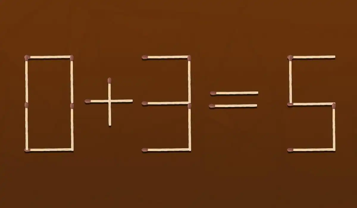 Ta klasična uganka z vžigalicami zahteva, da z eno samo potezo popraviš napačno enačbo 0+3=5. Rešitev ni v računanju, temveč v tem, kako spremeniš pomen števk in simbolov – ključ je v vizualni pretvorbi enega elementa.