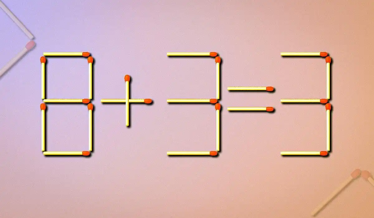Predstavljaj si, da si na hitrem kvizu, kjer ti čas teče. Pred tabo je enostavna, a očitno napačna enačba, sestavljena iz vžigalic: 8 + 3 = 3. Pravilo je preprosto: premakneš lahko samo eno vžigalico. Ne smeš nič dodati, ne smeš odstraniti, samo prestaviti eno. Tvoj cilj je, da v desetih sekundah – čas, ki preizkuša tvojo spontanost in prožnost mišljenja – enačbo spremeniš v matematično pravilno. Si pripravljen preizkusiti svoj analitični um? Začni štoparico!