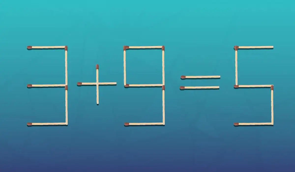 Ali lahko v samo sedmih sekundah popraviš napačno enakost 3+9=5 s premikom le ene vžigalice? Ključ je v tem, da eno število spremeniš v drugo in obenem popraviš rezultat. Poglejmo, kako se to naredi.