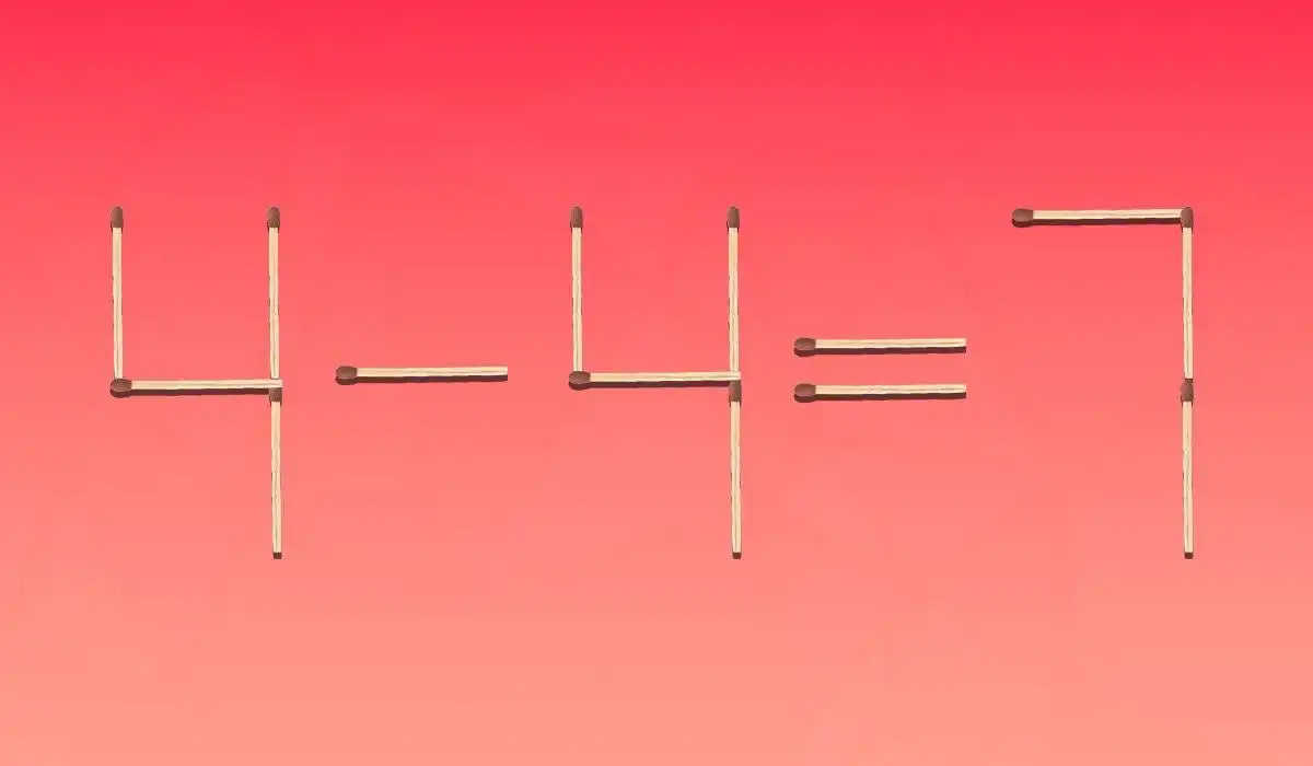 Ta klasična uganka z vžigalicami zahteva, da premakneš le eno vžigalico, da popraviš očitno napačno enačbo 4-4=7. Ključ je v tem, da ne razmišljaš le o številkah, ampak tudi o prostoru, ki ga vžigalice ustvarjajo.