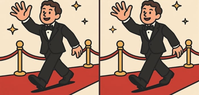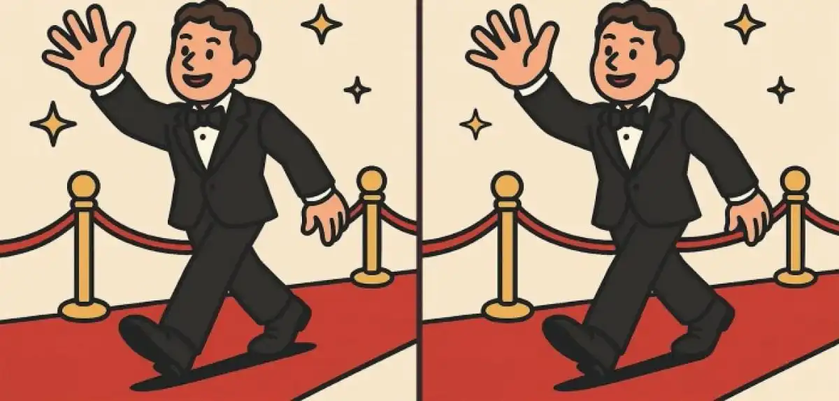 Pozdravljeni, ljubitelji izzivov! Danes vas čaka klasična, a vedno zabavna uganka iskanja razlik. Pred vami sta dve sliki, ki prikazujeta moškega, ki se sprehaja po rdeči preprogi. Prvi vtis je, da sta identični. A ni tako. Skrito je trije diskretne spremembe, ki preizkušajo vašo pozornost do podrobnosti in hitrost opazovanja. Vaš cilj? Poiščite vse tri v samo 91 sekundi. Ste pripravljeni preizkusiti svoj vid in koncentracijo? Začnimo!
