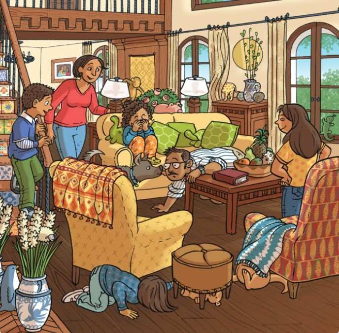Predstavljajte si ta prizor: družina se pripravlja na ustvarjalno popoldne, vendar sta glavna orodja, krtača in čopič, nekje izginila. Oče, mama in otroci premetavajo vse po vrsti, a zaman. Vaša naloga je, da z ostrim pogledom in hitrim umom opazite, kaj oni ne morejo. Imate le 22 sekunde, da preiščete podrobno risbo in poiščete skrita predmeta. Čas teče!