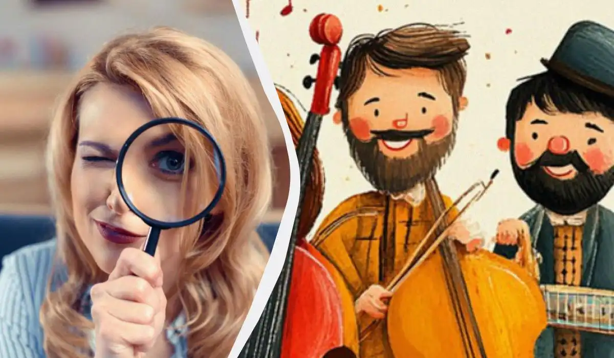 Na tej sliki se med petimi glasbeniki skriva nekaj popolnoma nenavadnega – vesoljček. Ključ do rešitve ni v obrazih, temveč v številu okončin. Če boste pozorno preverili vsako figuro, boste odkrili nekaj, kar ne spada v naš svet.