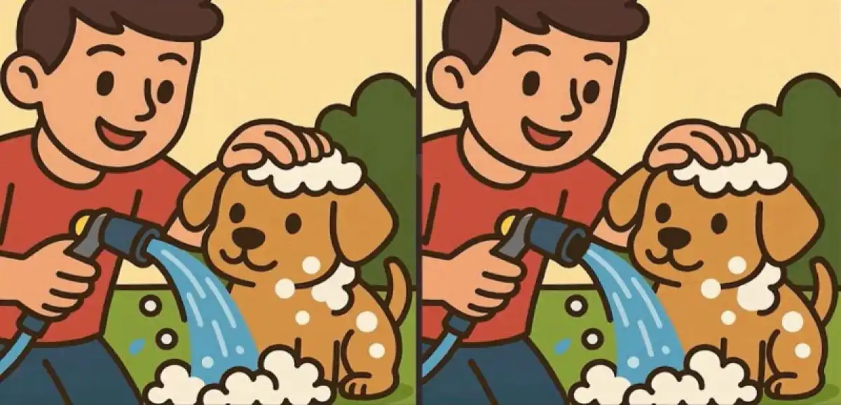Na tej sliki, kjer deček kopa svojega psa, sta dve na videz identični verziji. A če se poglobite in sistematično pregledate vsak del slike, boste odkrili tri skrite neskladja. Ključ do uspeha je v metodičnem pregledovanju.