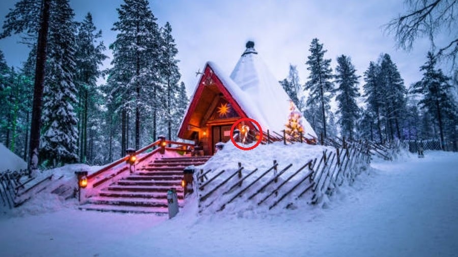 V zasneženi idili z leseno hišo se skriva majhen, sladek zaklad – bonbon, ki ga je treba najti v samo 10 sekundah. Ključ do uspeha je v tem, da ne iščeš predmeta, temveč prekinitve v naravnem vzorcu.