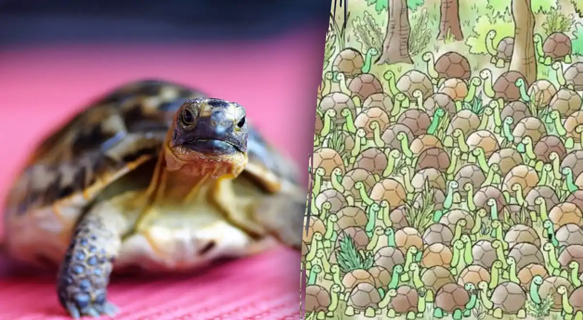 Med množico nasmejanih želv se skriva ena samska kača. Če jo najdete v nekaj sekundah, imate izjemen vid in pozornost do podrobnosti. Ključ je v tem, da iščete narobe usmerjeno glavo in drugačno teksturo.