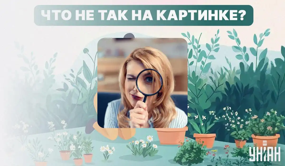 Na sliki ženska dela na vrtu, a nekaj v njenem orodju ali ravnanju popolnoma ni na mestu. Ključ do rešitve je v tem, da opazite, kako se določeno dejanje ne ujema s predmetom, ki ga drži.