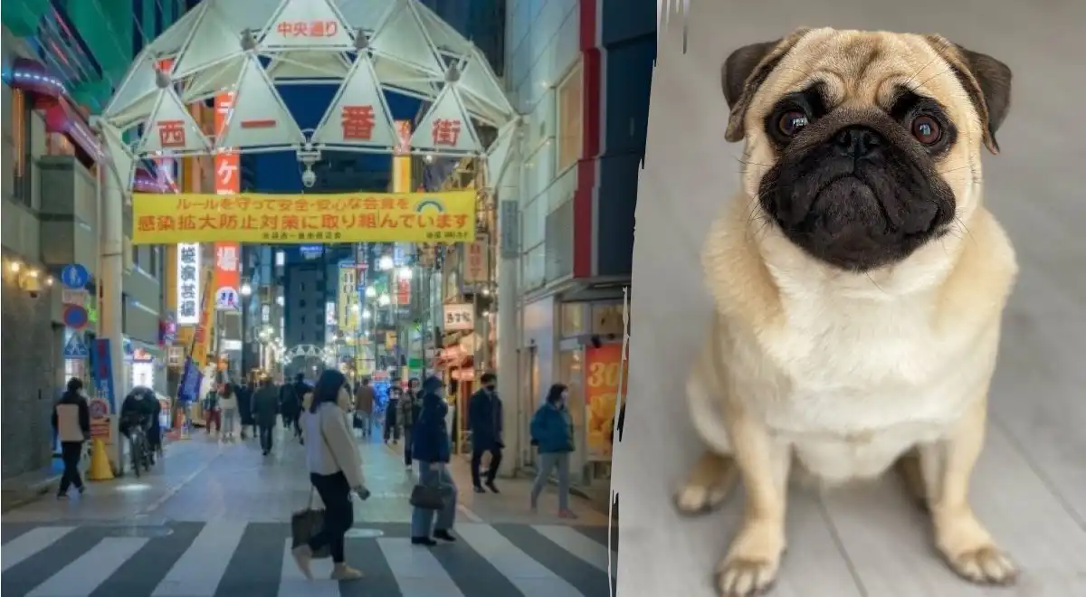 Na prometni mestni ulici, polni ljudi, se skriva majhen mops. Kljub temu, da je slika zelo podrobna, se pes umakne v ozadje in postane del vsakdanjega vzorca. Ključ do rešitve je v tem, da ne iščete celotne oblike živali, temveč njen značilni obraz.