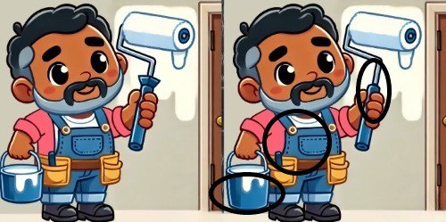Pozdravljeni, ljubitelji izzivov! Danes vas čaka klasična, a zelo zapeljiva vizualna uganka. Pred vami sta dve na videz identični sliki, ki prikazujeta moškega, kako barva steno. Vaša naloga je preprosta: v samo 15 sekundah morate najti tri razlike. Se zdi preprosto? Ne pustite se ujeti v past prvega vtisa! Takšne naloge preizkušajo vašo pozornost do podrobnosti in sposobnost hitrega vizualnega skeniranja. Prav te razlike so pogosto tako majhne ali spretno vključene v vzorec, da jih oko ob površnem pogledu zgreši.