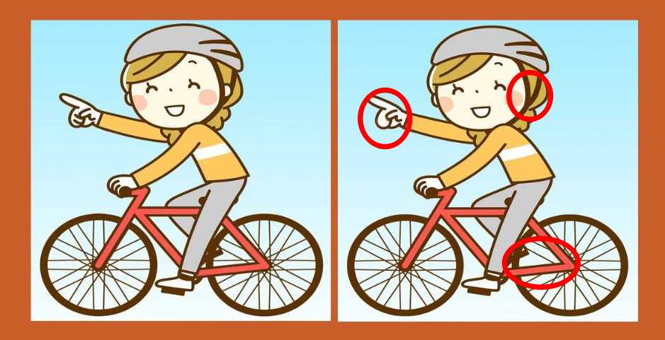 Predstavljajte si, da ste urednik ilustracij za otroško knjigo. Prejeli ste dve skoraj identični risbi dekleta na kolesu, vendar morate najti vse razlike, preden gre knjiga v tisk. Imate le 21 sekund! Ta časovni pritisk preizkuša vašo hitrost opazovanja in sposobnost, da se ne pustite zavesti s podobnostjo.