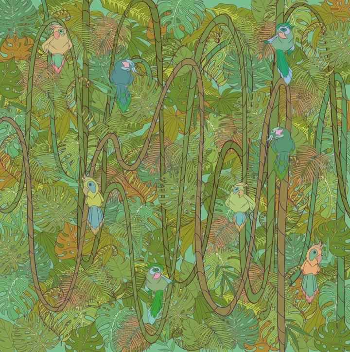 Na tej sliki džungle se med gostim listjem in vejami spretno skriva kača. Ključ do njenega odkritja ni v iskanju očitnih oblik, temveč v prepoznavanju nenavadnega teksturnega vzorca, ki odstopa od okolice. Poglejte pozorno proti sredini.