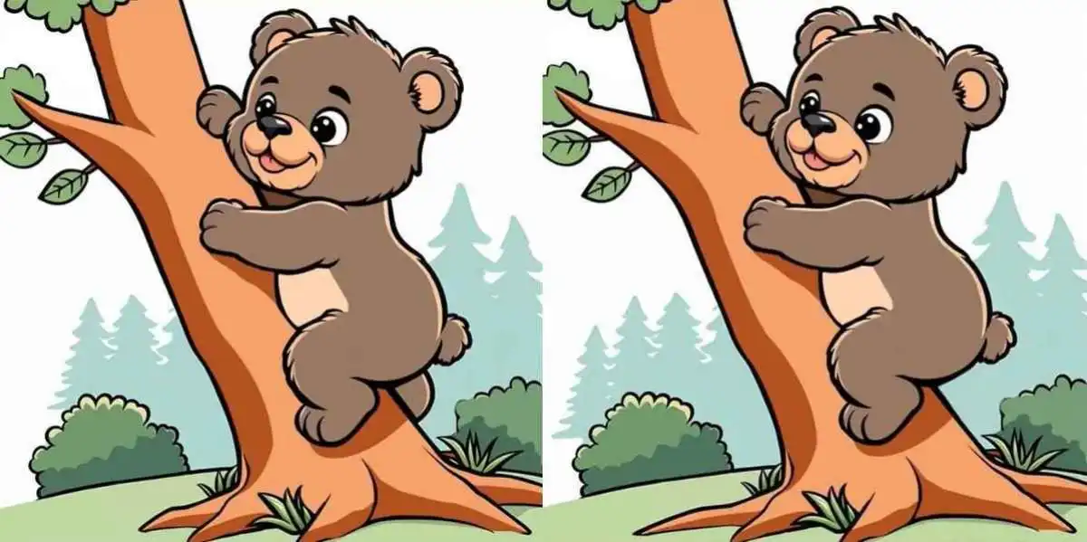 Včasih je najboljši trening za možgane preprosta, a zapletena uganka. Takšna je tudi ta izzivna naloga iskanja razlik. Pred vami sta dve barviti sliki, ki prikazujeta nasmejanega medveda, kako spretno pleza po drevesu. Vse je videti popolnoma enako, a ni. Med slikama se skrivajo tri majhne, a ključne razlike. Vaša naloga je, da jih odkrijete v zelo omejenem času – v samo 13 sekundah. To je pravi test za vašo hitrost opazovanja in koncentracijo.
