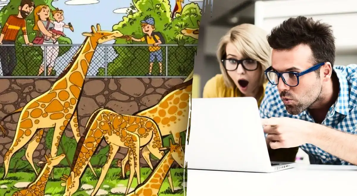 Poglejte si to živo sliko živalskega vrta. Žirafe se sprehajajo, obiskovalci jih opazujejo z ograje – vse je polno gibanja in barv. A v tem navidezno običajnem prizoru se skrivata dva popolnoma tuja elementa. Naloga je jasna: v kaosu oblik in senci najdite skriti ananas in metulja. Časovna omejitev pa še poveča izziv: imate le približno 8 sekund. To ni čas za bežen pogled, to je čas za koncentrirano opazovanje in hitro obdelavo vizualnih informacij.