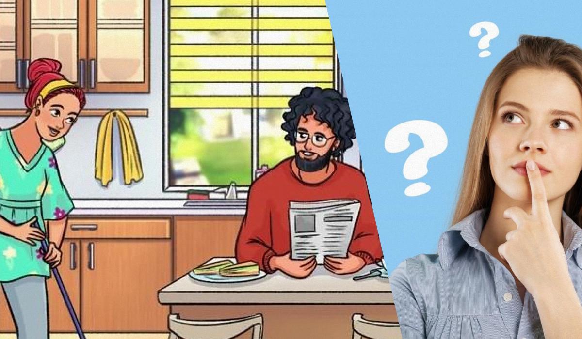 Predstavljaj si, da si na kratkem obisku pri prijateljih. Vstopiš v kuhinjo in vidis mirno sceno: mož bere časopis in srka čaj, njegova partnerka pa pomiva tla. Vse se zdi normalno, dokler ne začneš bolj natančno opazovati. Nekaj tukaj ne štima. Nekaj je tako očitno narobe, da bi moralo takoj planiti v oči, a se zaradi vsakdanjosti prizora lahko preprosto skrije v ozadje. Tvoj izziv je najti to napako v samo 11 sekundah.
