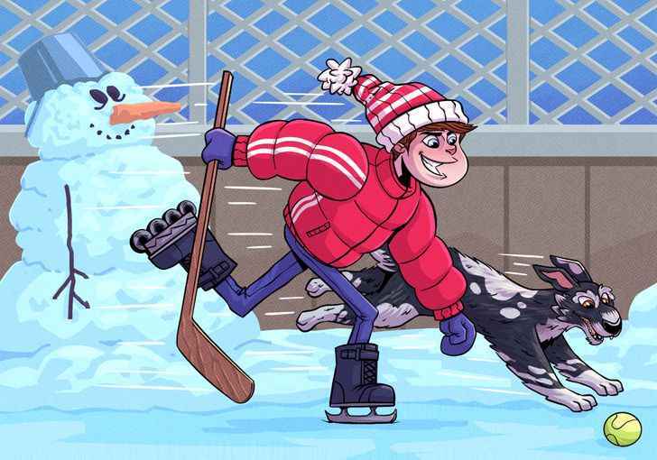 Na tej slibni zimski sliki se skriva ena očitna logična napaka, ki jo je mogoče odkriti z natančnim opazovanjem detajlov. Ključ je v opremi dečka na ledu.