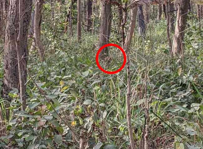 Tretji namig (skorajšnja rešitev): Poglejte v smeri, iz katere gleda tigr. Njegova glava je obrnjena neposredno proti opazovalcu. Iščite dve svetli točki – to sta njegovi očesi.