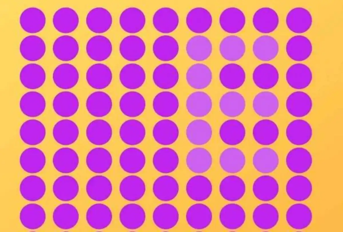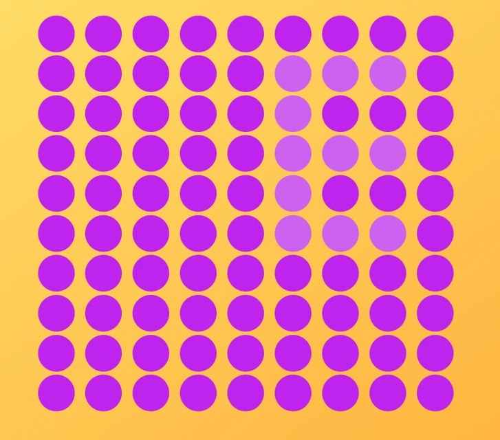Poglejte sliko spodaj. Imate le šest sekund, da med množico vijoličnih krogov na rumeni podlagi najdete črko E. Ne iščite oblike, ki jo narišejo robovi krogov. Namesto tega se osredotočite na njihovo barvno intenzivnost. Črka je tam, a je skrita v različnih odtenkih iste barve.