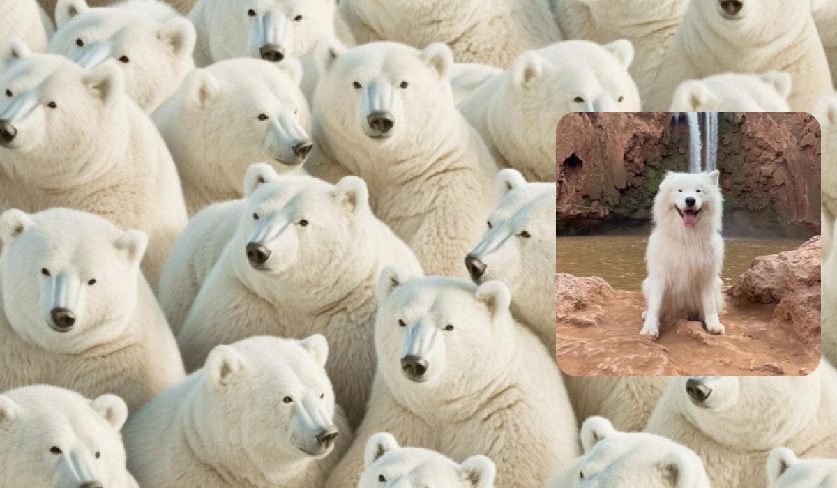 Danes se bomo poglobili v fascinantno svet vizualnih ugank, kjer je vaša pozornost in sposobnost opazovanja patternov postavljena na preizkušnjo. Pred vami je slika, polna belih, puhastih bitij. Na prvi pogled so vsi polarni medvedi. A ne drži. Med njimi se je skril en sam, zelo prijazen gost – pes pasme samojed. Naloga zveni preprosto: poišči psa! A zaradi podobnosti v barvi in postavi je to pravi izziv za vaše oči in možgane. Pripravite se na test, ki zahteva hitro oko in strateško opazovanje.