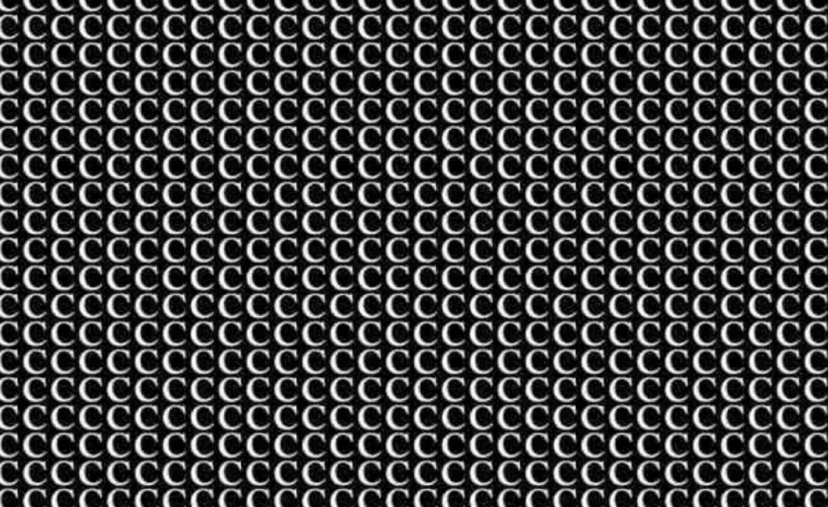 Med množico črk “C” se skriva ena sama črka “G”. Ta optična iluzija preizkuša vašo pozornost do podrobnosti in hitrost zaznavanja. Ključ je v tem, da ne gledate na celoto, temveč sistematično preiskujete vsak del slike.