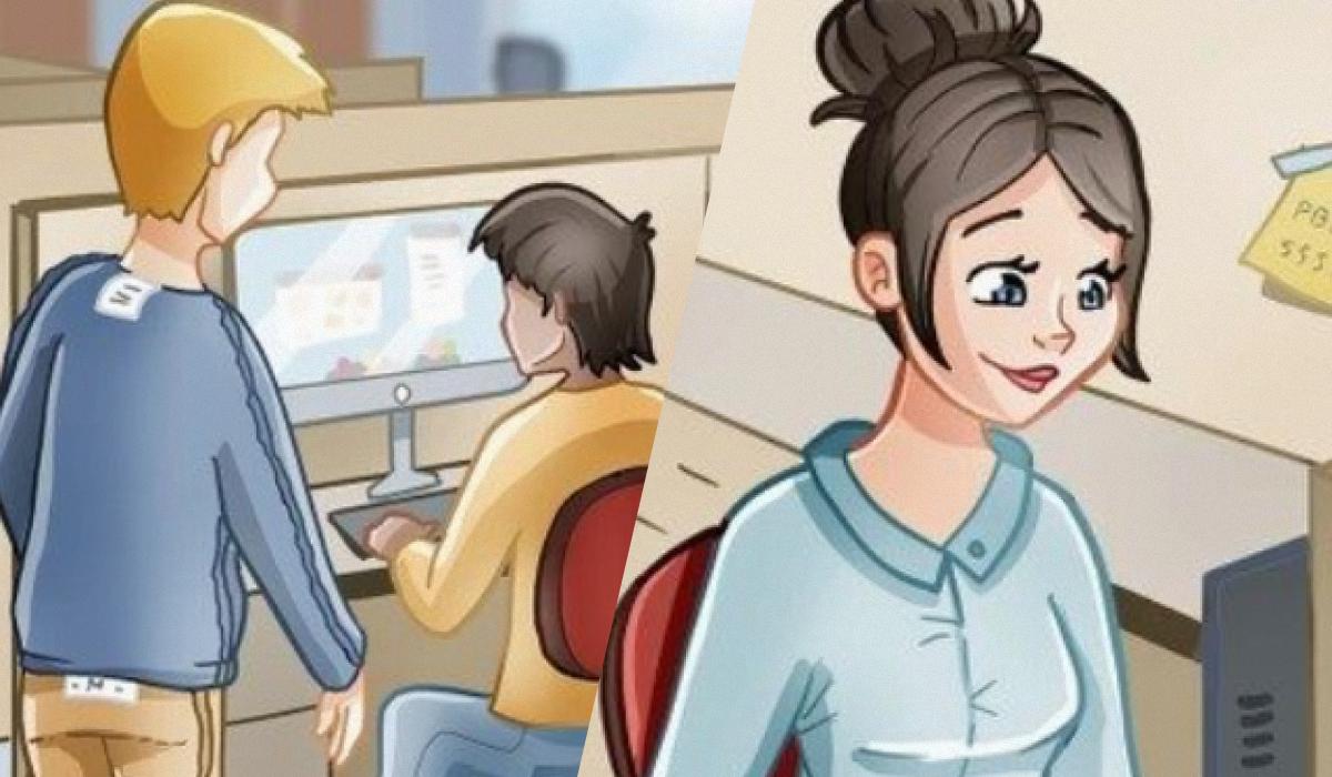 Na sliki pisarne se skrivajo tri logične napake, ki jih na prvi pogled ne opazimo. Ključ je v tem, da ne iščemo le vizualnih neskladij, ampak tudi stvari, ki v tem kontekstu niso smiselne. Poglejte pozorno na predmete in dejanja ljudi.