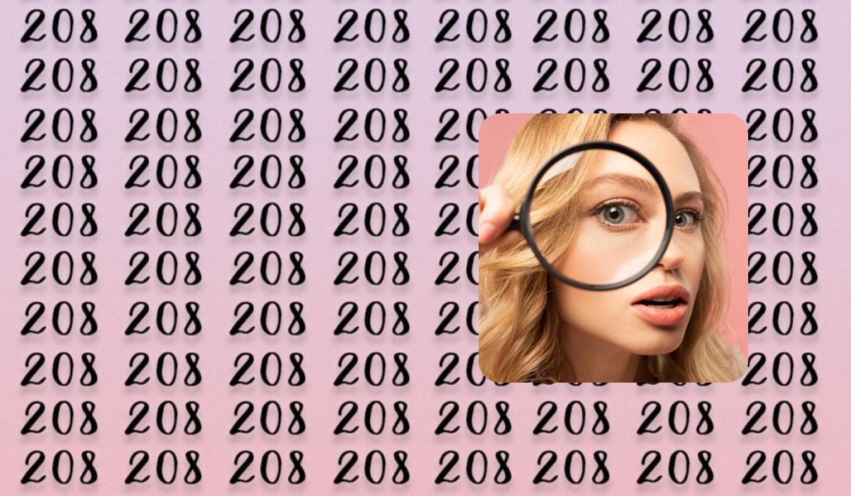 Na sliki je osem stolpcev s številko 208, vendar je eden od njih drugačen. Ključ do rešitve je v tem, da ne iščete očitne napake, temveč skrbno primerjate oblike vsake posamezne števke. Uspešni reševalci se osredotočijo na podrobnosti, ne pa na celotno sliko.