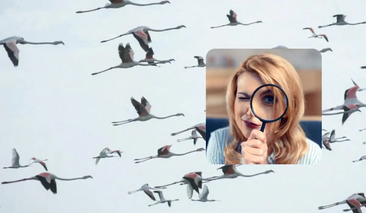 – Iscijte element, ki krši vzorec. Flamingi imajo zelo specifično obliko. Iščite nekaj, kar je bolj pokončno, z drugačnim kljunom ali glavo.