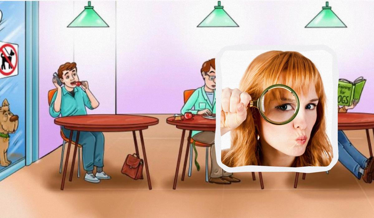V petih sekundah moraš med gosti v kavarni prepoznati lastnika psa pred oknom. Ključ do odgovora ni v sami živali, temveč v majhnem, a izrazitem detajlu na eni od oseb.