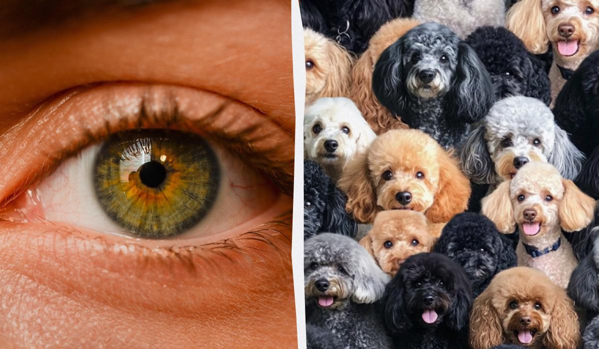 V tej vizualni uganki se med množico kodrastih psov skriva ena ovca. Ključ do hitre rešitve ni v dlaki, temveč v majhni, a ključni anatomski podrobnosti, ki ločuje te dve živali.
