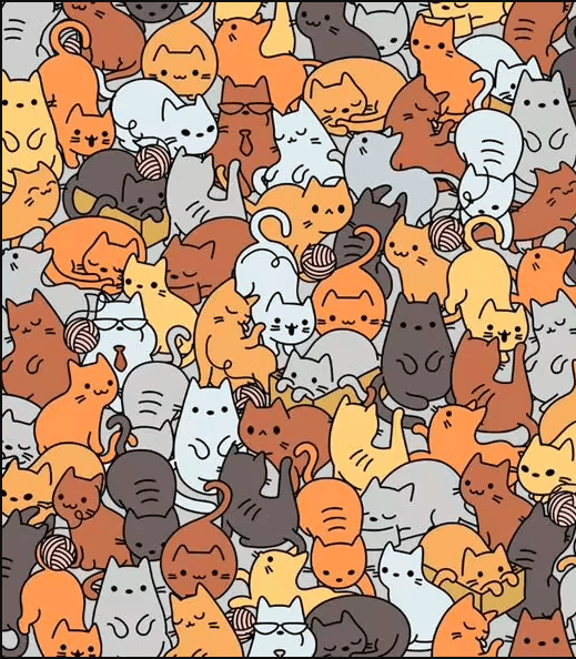 Ali ste kdaj občudovali sliko, polno ljubkih bitij, in se nenadoma zavedeli, da nekaj ne štima? Točno to se zgodi s to uganko. Pred vami je morje različno obarvanih mačk, vendar je med njimi skrita ena majhna, a bistveno drugačna figura – miška. Avtorji trdijo, da povprečni reševalec potrebuje približno šest sekund. Ali lahko premagate ta čas? Za trenutek prenehajte brati in se poglobite v sliko spodaj. Preizkusite svojo pozornost in hitrost opazovanja.