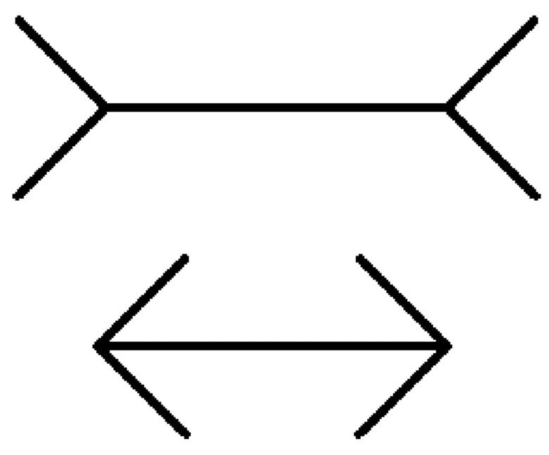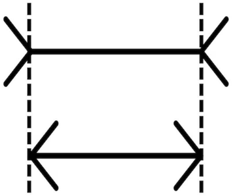 To je Müller-Lyerjeva iluzija, ena najbolj znanih geometrijsko-optičnih iluzij.