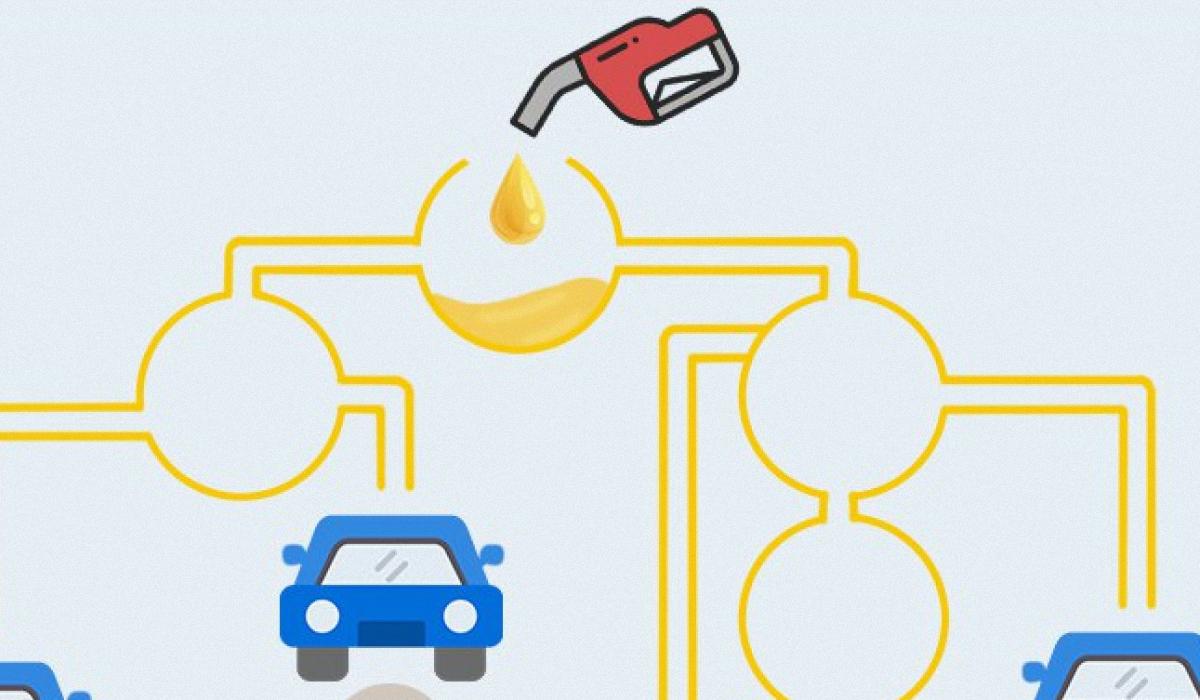 To pomeni, da bo gorivo, ki vstopa v rezervoar, najprej doseglo nivo odcepa za avto 1. Šele ko se nivo dvigne višje, se bo začelo polniti tudi v avto 2.