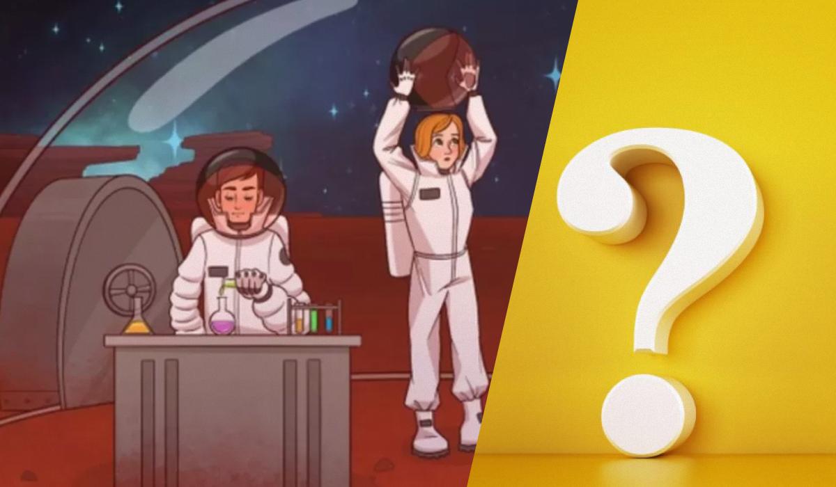 Na sliki, ki prikazuje astronavte na Marsu, se skriva ključna logična napaka, povezana z njihovim okoljem. Če jo najdete v sedmih sekundah, dokazujete izjemno pozornost in prostorsko razumevanje. Rešitev ni v detajlih opreme, temveč v kontekstu celotnega prizora.