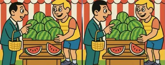 Pred vami sta dve na videz identični sliki možakarja, ki kupuje lubenico. A skrivata tri skrite razlike! Ali jih boste našli v manj kot pol minuti?