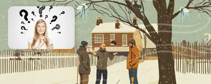 Na sliki so trije možje, ki se pogovarjajo pozimi, a eden od njih ne opazi neposredne nevarnosti nad svojo glavo. Ključ do odgovora ni v očitnem, temveč v.