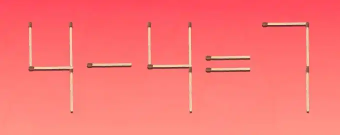 Ta klasična uganka z vžigalicami zahteva, da premakneš le eno vžigalico, da popraviš očitno napačno enačbo 4-4=7. Ključ je v tem, da ne razmišljaš le o